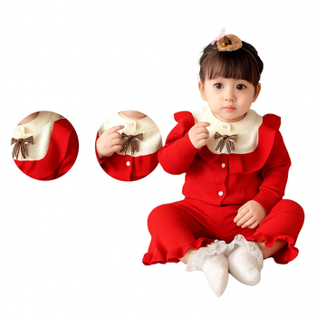 2025 Otoño Invierno bebé niña conjunto de suéter de punto Traje de dos piezas diseño de volantes pajarita Tops y pantalones 70-100cm